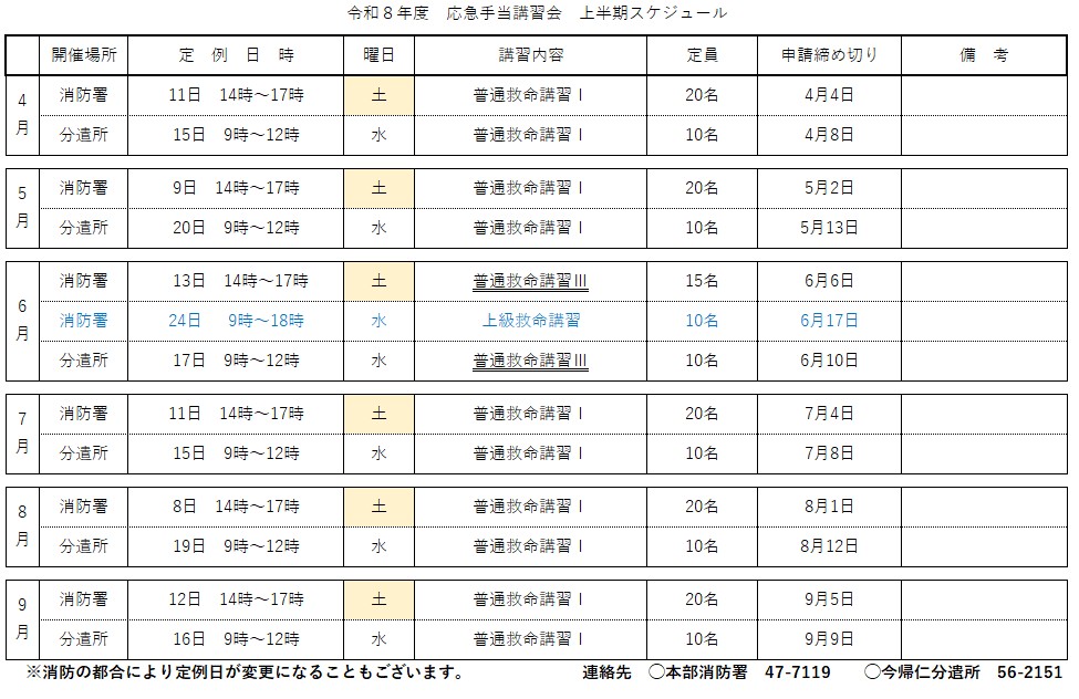 | 講習会の年間スケジュール | 上半期(4~9月) 下半期(10~3月) |